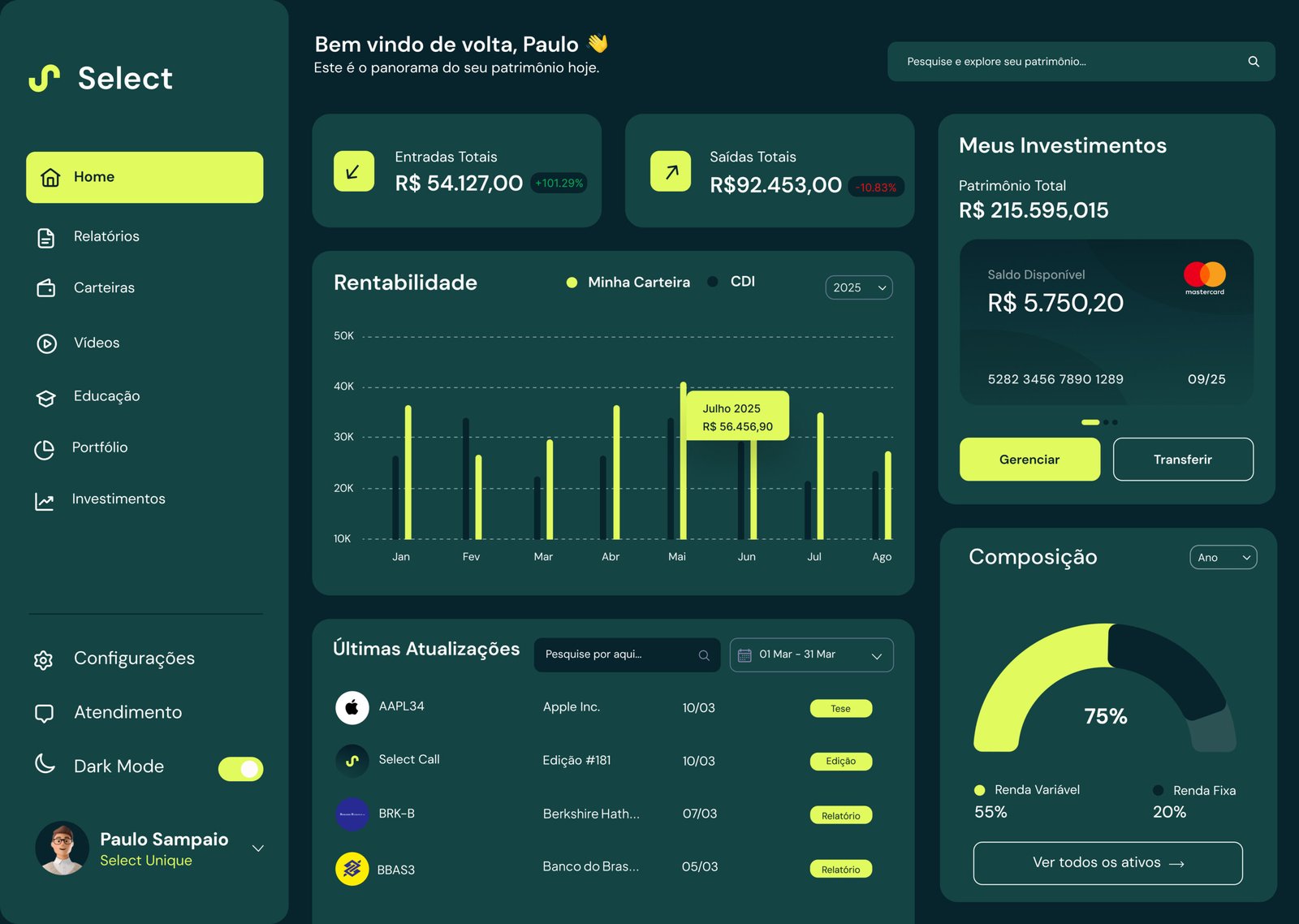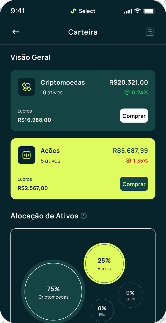 Ter o apoio da Select é estar à frente, acelerando a realização dos seus objetivos financeiros e o aumento do seu patrimônio.